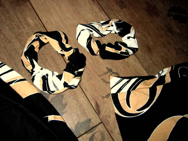 nachdem ich geschnackelt habe, dass loops und halstücher leicht zu nähen sind, habe ich aus dem verschnitt auch einige haargummis gebastelt. das ist eigentlich gar nicht viel fummelei und geht schnell. das ensemble in beige, weiss und schwarz werde ich demnächst mal im büro tragen, der loop mit den pilzen allerdings ist wohl eher etwas für meine kleine nichte. mal sehen.